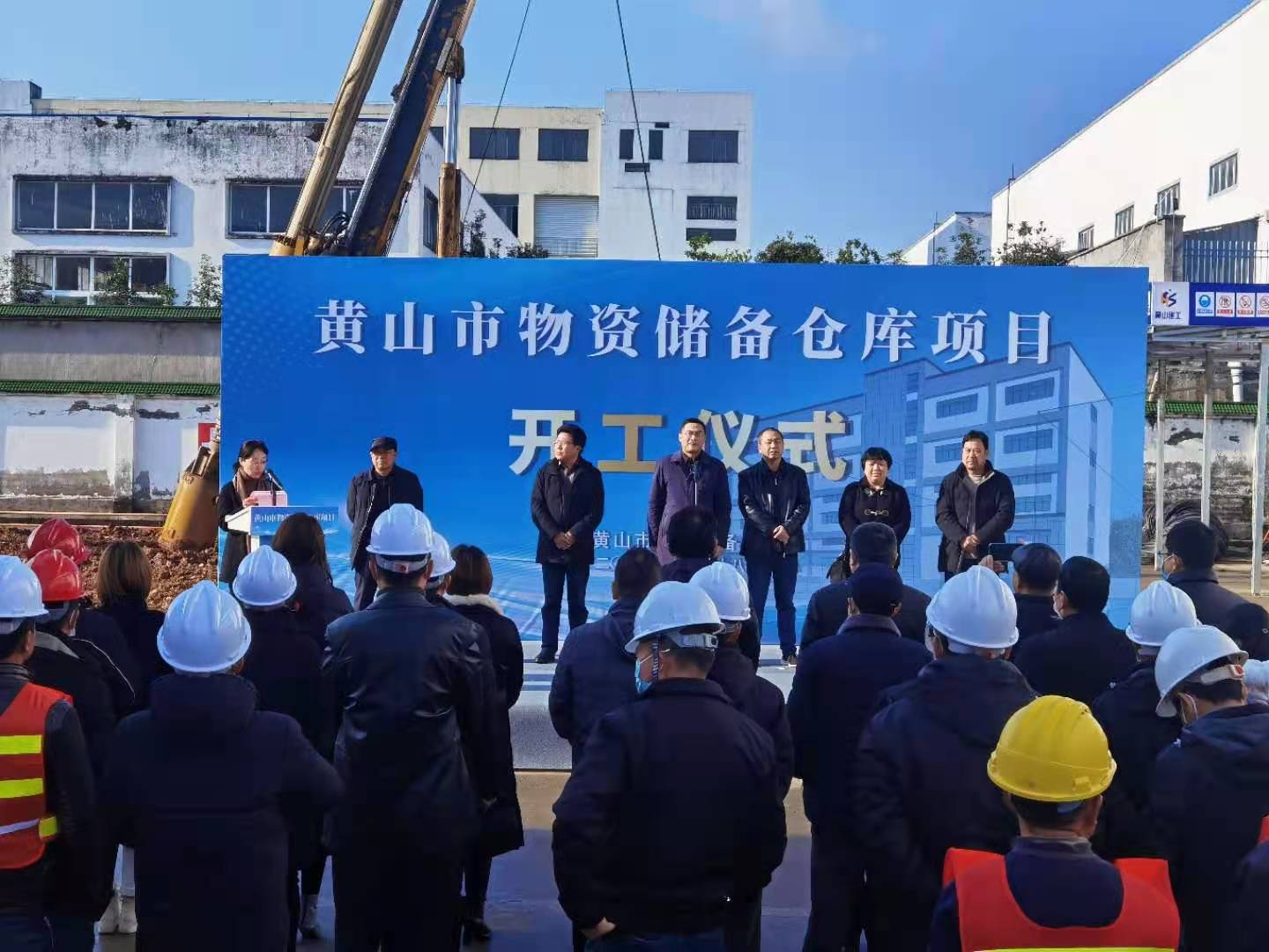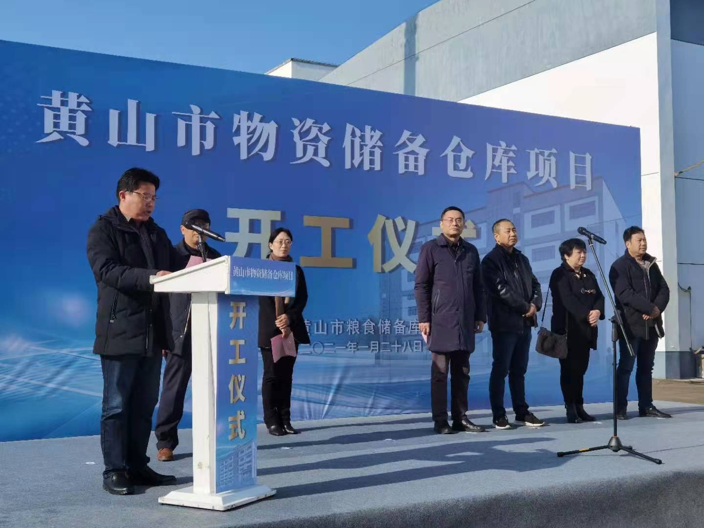 2021年1月28日上午9:30,黃山市物資儲備庫項目開工奠基活動在九龍工業園區項目地舉行,省糧食和物資儲備局物資和能源儲備處處長孫安慶、四級調研員何薇、市發展改革委(市糧食儲備局)主任(局長)丁士禮、建設單位主要負責人、黃山建工集團總經理葉金發等相關單位負責人參加了奠基儀式。