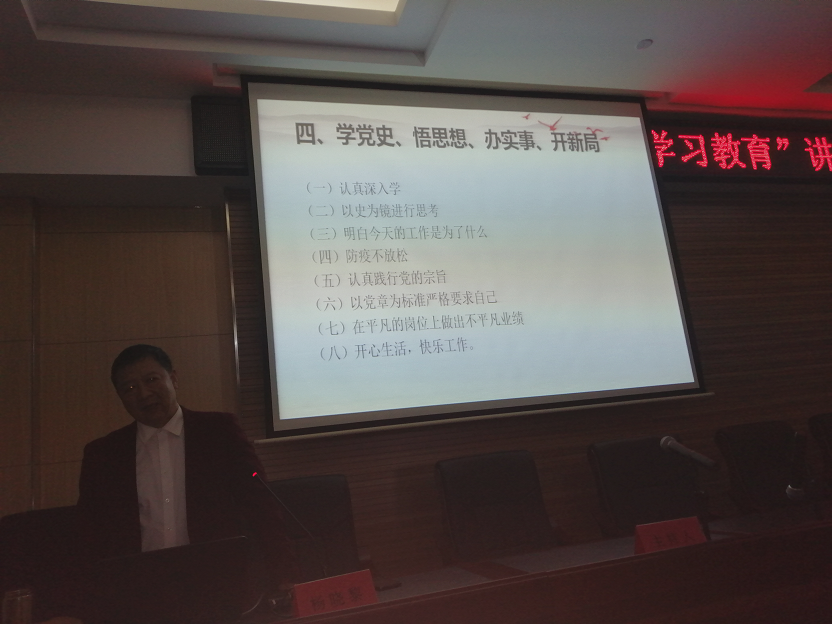 動員結束后,緊接著由市委黨校楊曉黎教授為我們作了精彩的“黨史學習教育”專題報告。楊教授為我們解讀了中國共產黨由誕生、發展、壯大到建立新中國,以及帶領全國人民建設小康社會艱難而輝煌的革命歷程。同時楊教授也結合自己對黨史的研究體會,以豐富的史實、鮮明的觀點、精辟的語言,向我們闡述了中國共產黨100年艱苦卓絕的風雨歷程,總結出沒有共產黨就沒有新中國的偉大真理。報告深入淺出、內容豐富,對我們加強黨的歷史和思想政治理論學習,進一步提高黨性修養,具有很強的理論指導作用。報告很受教育,很受啟發,收獲很大。會議最后,集團總支副書記汪明星要求廣大黨員干部認真學習領會,掌握實質,以飽滿的工作熱情和扎實的工作作風,認真履行職責,努力工作,為公司的發展壯大貢獻力量。
