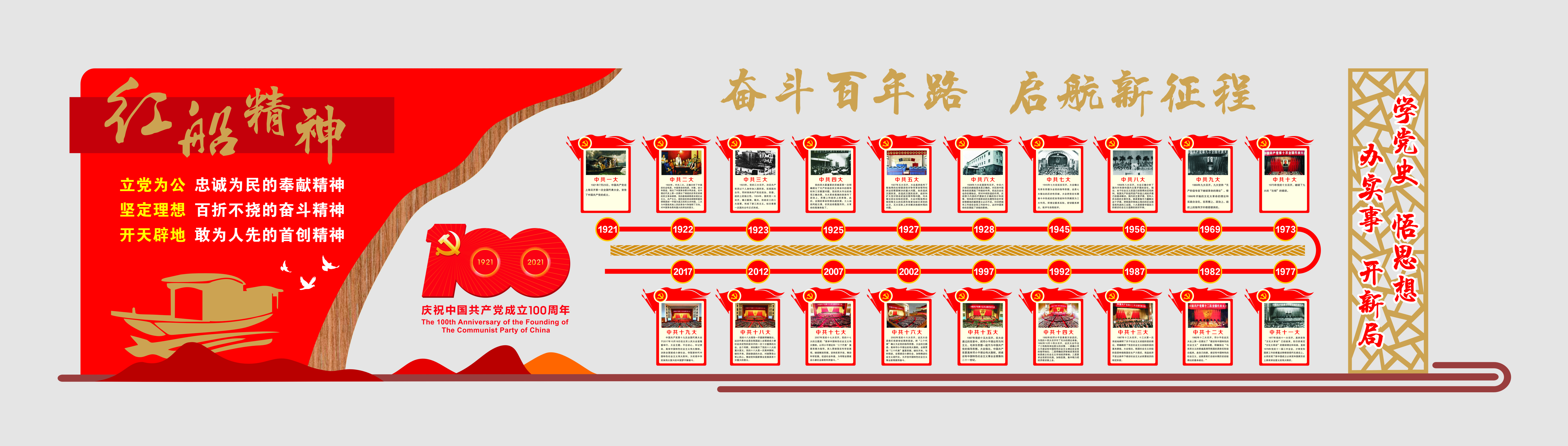 在建黨100周年之際,為深入學(xué)習(xí)貫徹習(xí)近平總書記在黨史學(xué)習(xí)教育動員大會上的重要講話精神,引導(dǎo)廣大黨員干部在回望歷史中感悟初心使命、在歷史縱深中明確坐標(biāo)方位、在鑒往知來中強化使命擔(dān)當(dāng)。近日,黃山建工集團黨總支精心制作黨史教育展板,在辦公樓大廳內(nèi)營造濃厚學(xué)習(xí)氛圍。