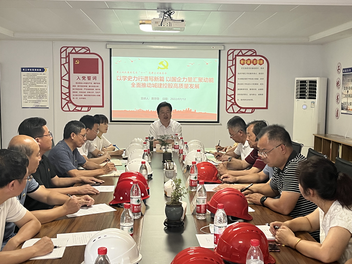 2022年7月12日上午,黃山城投集團黨委副書記、董事、總裁黃世穩同志冒著酷暑來到黃山建工集團共建合作單位文瀾軒“工地黨?!睘槲覀冎v授專題黨課,參加黨課的有城投集團工程部總監汪潤蘭同志、黨群工作室副主任王蘊寒同志,城建控股、建工集團總支班子成員、黨員代表40余人。