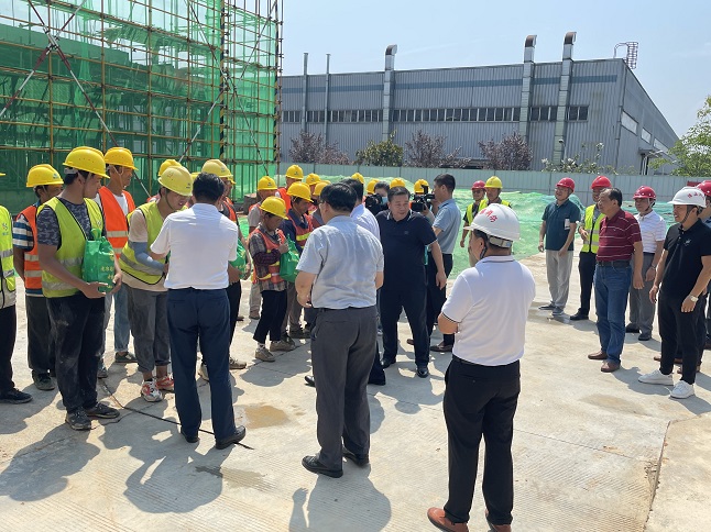 近日,黃山市天氣持續(xù)高溫酷熱,驕陽似火,黃山博盛消防裝備有限公司新廠區(qū)1-2#車間及研發(fā)中心工人仍堅(jiān)守在施工一線,頂烈日,搶工期。7月26日上午,屯溪區(qū)委書記吳旭光、區(qū)委副書記、區(qū)長(zhǎng)楊林,區(qū)人大常委會(huì)主任朱學(xué)軍,區(qū)政協(xié)主席袁震宇,區(qū)政協(xié)副主席杜祖紅等一行深入工地現(xiàn)場(chǎng),開展“送清涼進(jìn)工地”活動(dòng),看望慰問項(xiàng)目部一線職工。