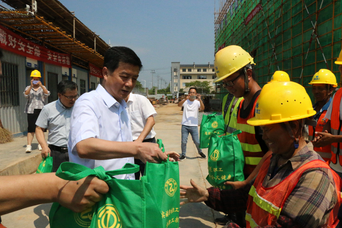 在項(xiàng)目施工現(xiàn)場(chǎng),區(qū)委書記吳旭光代表區(qū)委區(qū)政府向在高溫下作出辛勤工作的工人們表示深深的敬意,將防暑降溫物品送到他們手中,并叮囑他們要?jiǎng)谝萁Y(jié)合,注意身體健康。并要求項(xiàng)目部要科學(xué)安排作息時(shí)間,制定高溫應(yīng)急預(yù)案,加強(qiáng)施工現(xiàn)場(chǎng)安全管理,確保高溫時(shí)期工地安全生產(chǎn)形勢(shì)穩(wěn)定。