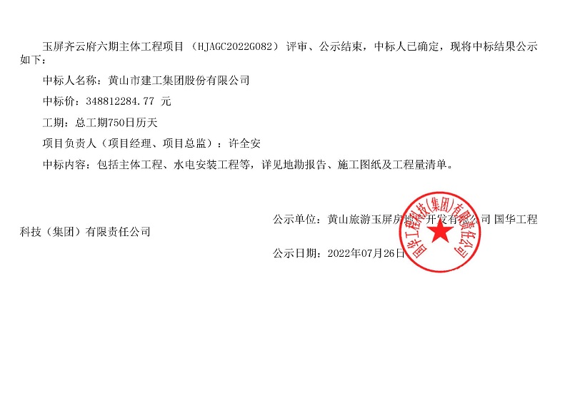 7月22日公司經營一線再傳捷報,一舉中標了至今為止我公司史上中標的最大單位建筑項目--玉屏齊云府六期主體工程,總建筑面積約15.1萬平方米,總造價348812284.77 元,為公司贏得了良好的社會效益。