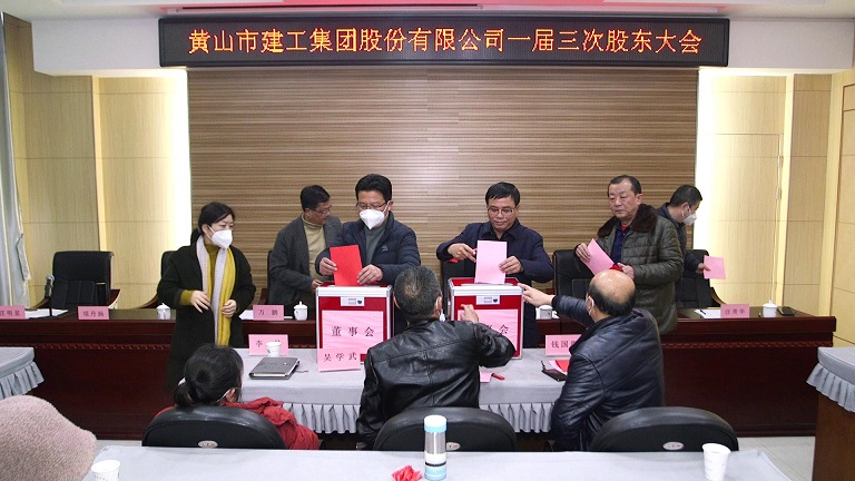 會上經過審議,表決通過《黃山市建工集團股份有限公司第二屆董事會、監事會換屆選舉辦法》,選舉項端陽、許自兵、葉金發、萬鵬、吳學武、方哲源、陳德明為二屆董事會成員;選舉錢國徽、李丹、孫紅明、蘇國強、程永華為二屆監事會成員。