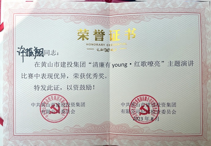 為慶祝中國(guó)共產(chǎn)黨成立102周年,深入推動(dòng)學(xué)習(xí)貫徹習(xí)近平新時(shí)代中國(guó)特色社會(huì)主義思想主題教育,全面貫徹落實(shí)黨的二十大精神,8月18日,由黃山建投集團(tuán)舉辦的“清廉有young·紅歌嘹亮”主題思政課隆重舉行,參賽選手以生動(dòng)的語言、動(dòng)聽的歌聲、真摯的感情為大家?guī)硪粓?chǎng)別開生面的視聽盛宴,黃山建工集團(tuán)青年員工許振翔在思政課演講比賽中取得優(yōu)勝獎(jiǎng)。